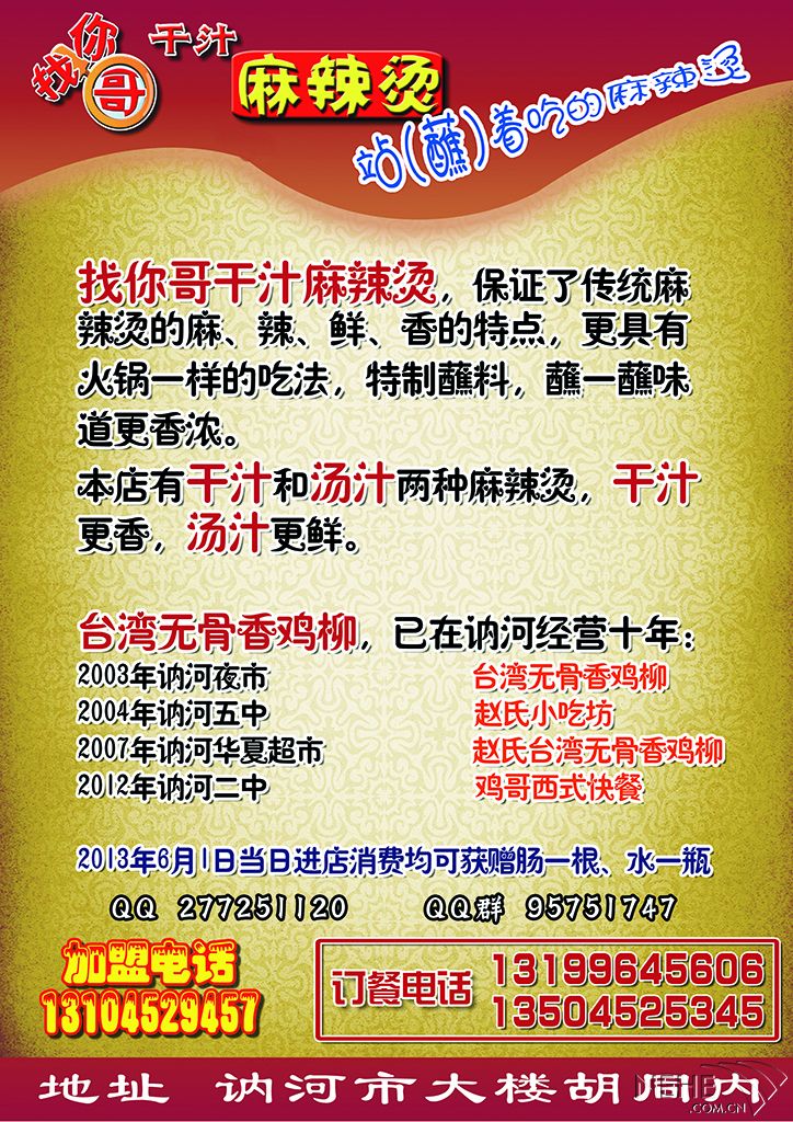 找你哥干汁麻辣烫 6月1日盛大开业