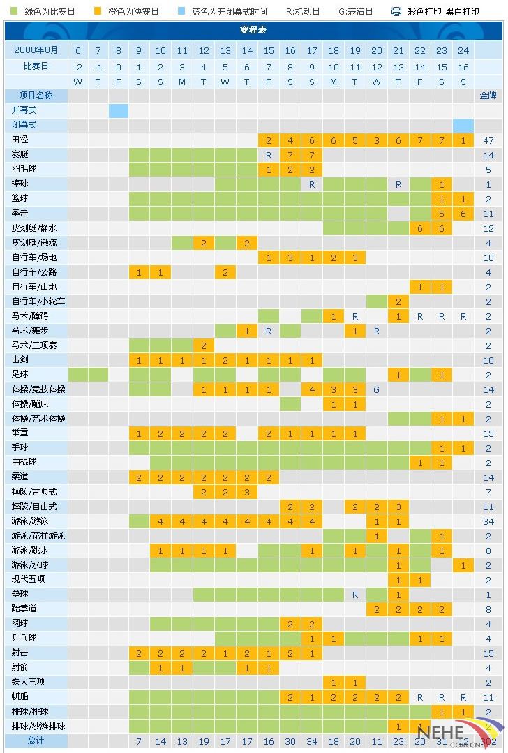 奥运来了!赛事赛程表